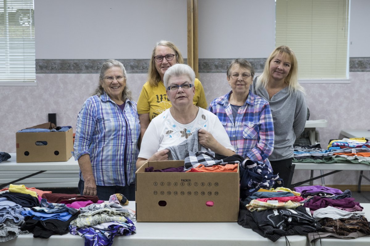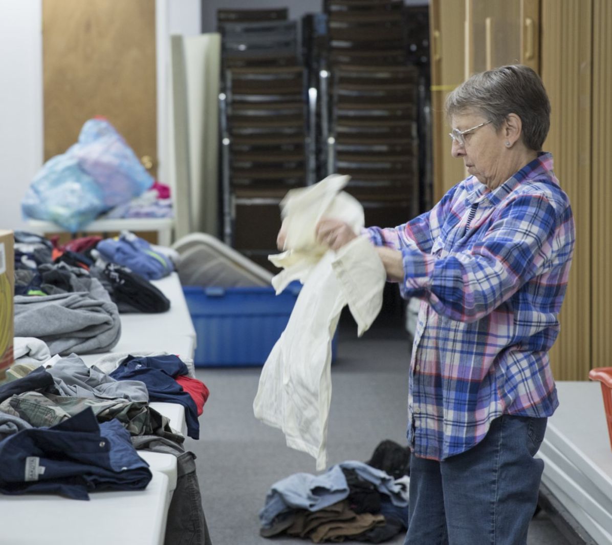 Every month we open up "shop" downstairs to give away free, clean clothing and shoes
