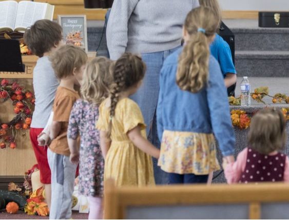 Mid-service we do announcements, and kids can head downstairs for age-appropriate teaching and activities.